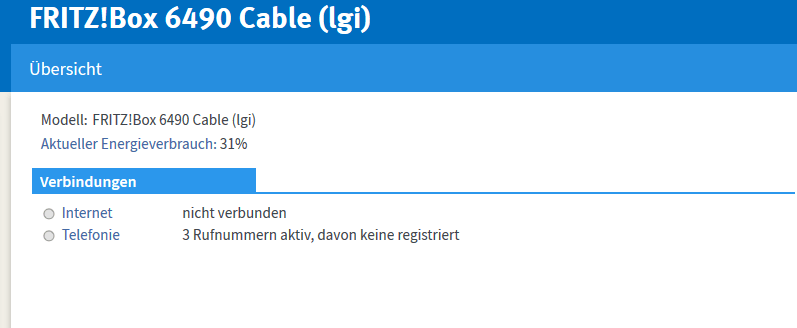 Seit dem 09.08.17 verliert die Fritzbox regelmäßig die Verbindung zum nächsten UM-Verteiler. Danach startet sie einmal neu und alles ist gut. Nach 5min – 20min passiert wieder das gleiche. Des Weiteren sind Zugriffe von außen auf das Netzwerk nicht mehr möglich. Die Portfreigaben wurden von der Fritzbox gelöscht. Danke hierfür! Es folgt der Anruf bei der Hotline von Unitymedia